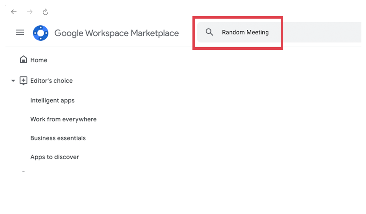 Search "Random Meeting" in the Google Workspace Marketplace and install it